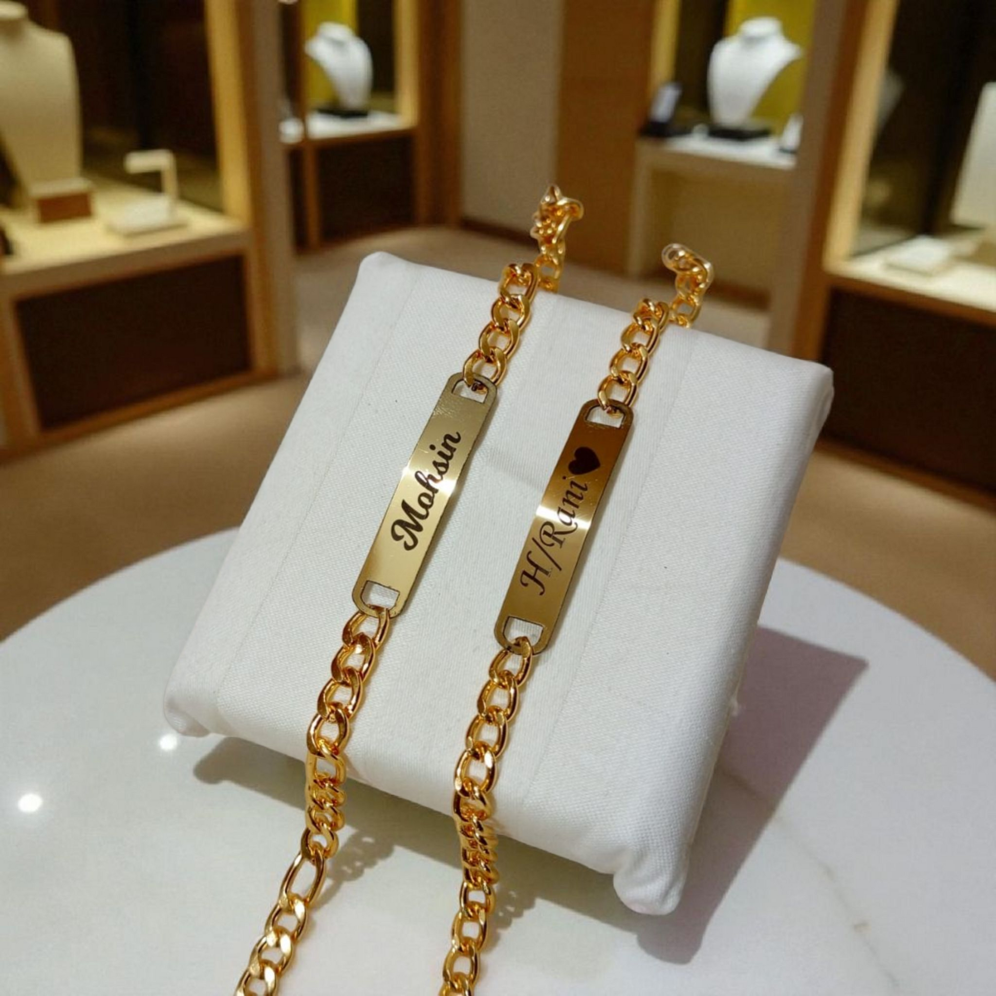 Celebrate your bond with the Couple Customized Cuban ID Bracelet by Shcollectionspk 💞